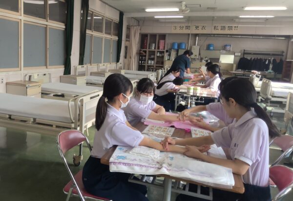 ヒューマンケア科は家庭科の学科です。 家庭科の学びを深め、生活全般に関する知識・技術を身に着けます。 また、本校では家庭科に加え、福祉科の学びも充実させており、卒業後は家庭・保育系,福祉・介護系,看護・医療系への進学を目指します。 3年間の学びを生かし、介護職へ就職することも可能です。