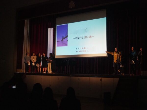 予餞会とは、在校生や教職員が、これまで学校を引っ張ってきた三年生に向けて感謝の気持ちを伝え、門出を祝い励ます行事です。
