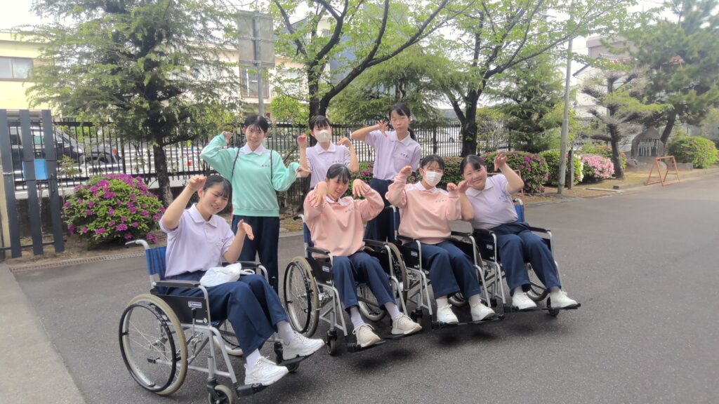 道路が想像していたよりも凸凹していて、介護者も利用者も体に負担があることに気づいたり、車が近くではしることが普段より怖く感じたり、目線が違うため普段とは違うことに気づくことができたりと、…さすが3年生、1年生の頃に学校内で学んだ車いすの実習時よりも、多くの学びがあったようです。