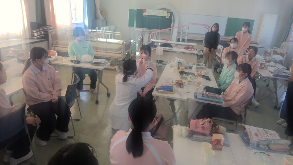 例年、口腔ケアの社会人講義を実施しています。この授業を受けたことにより口腔ケアの楽しさを知って、歯科衛生士を目指す生徒もいます。今年度卒業生の中にも進学を決定した生徒がいました🌸