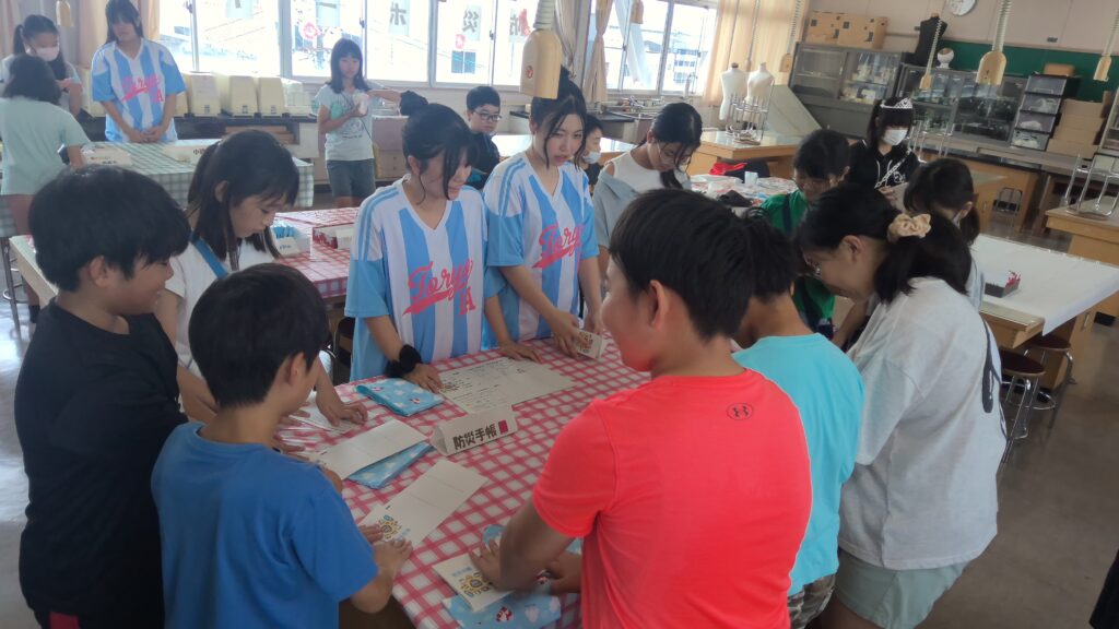 先月の学校祭で防災ポーチ作りを行いました。
