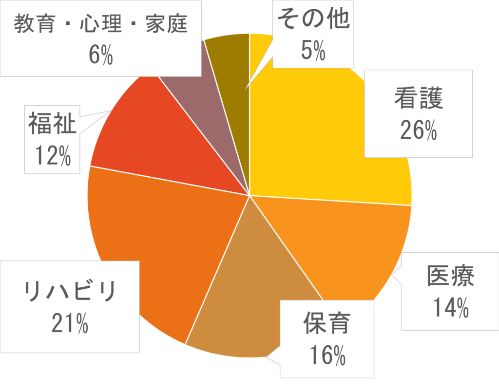 多くの生徒が、本校で学んだ知識・技能を生かし、本人の希望・適性に応じて、医療・福祉・リハビリ・保育・家庭など資格職を目指すことのできる大学・短大・専門学校に進学しています。